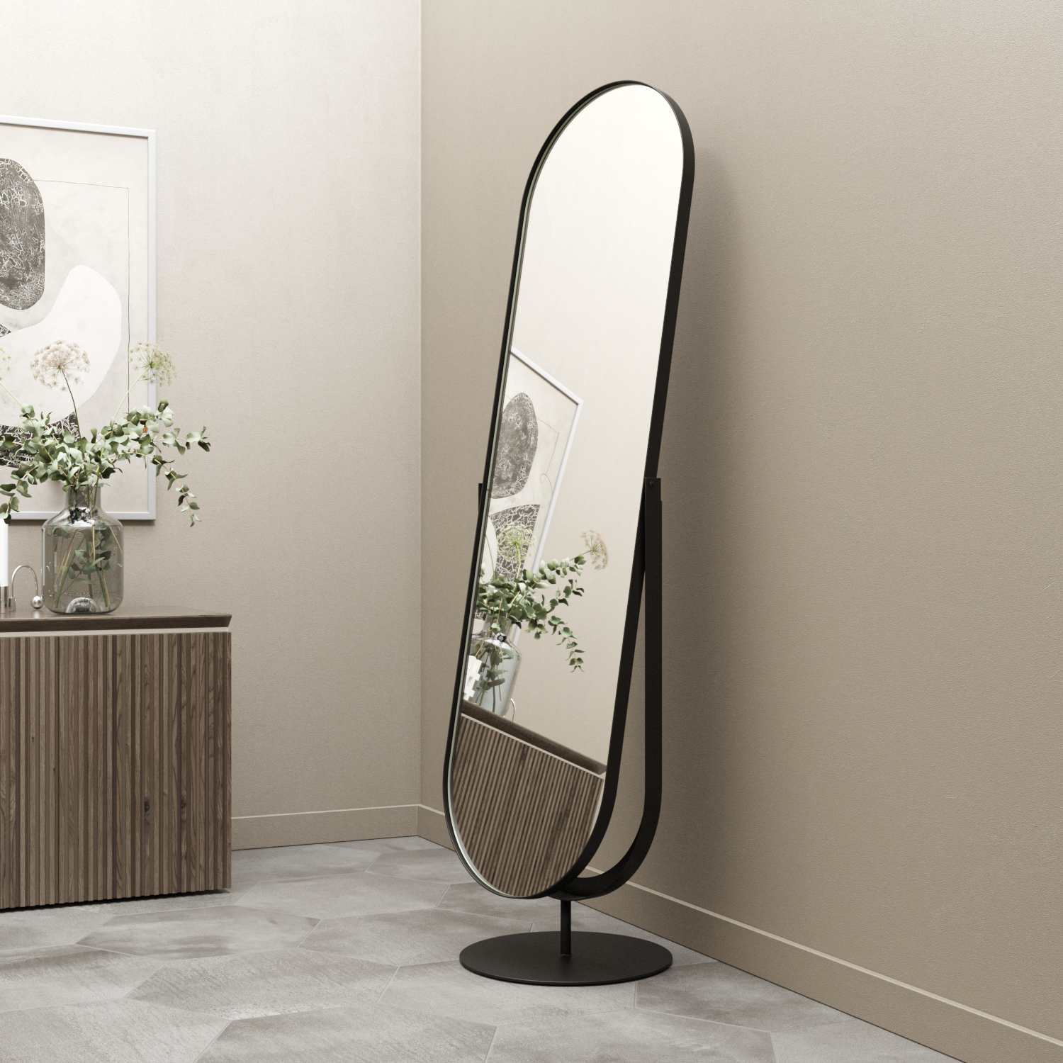 Напольное поворотное зеркало в чёрной металлической раме VIRGO 165 см