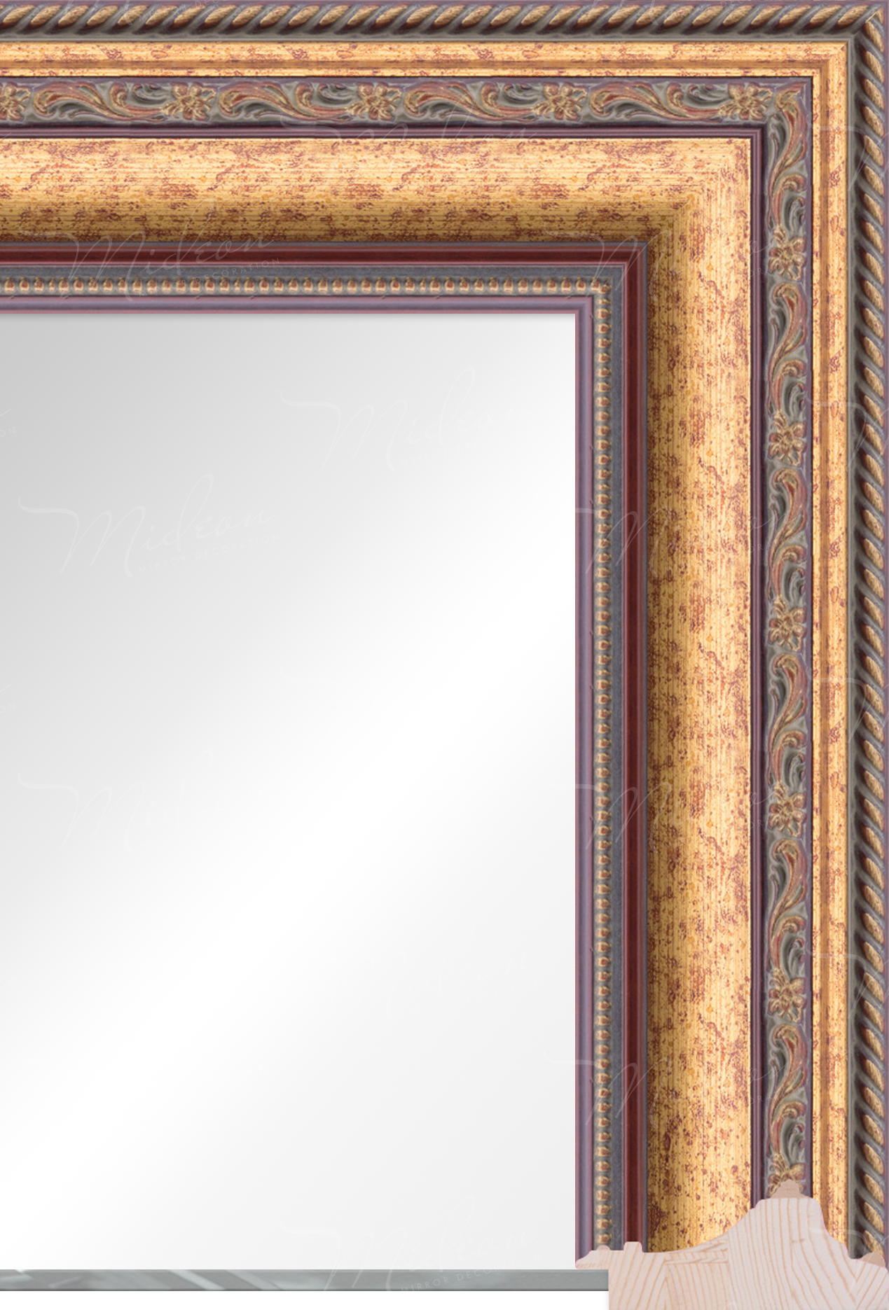 Зеркало в раме 88G-9-12 производится из багета путём нарезки багета под углом 45 градусов и сборки всего в единую конструкцию. Багет производства Россия имеет наивысшее качество, что обеспечивает длительный срок эксплуатации.